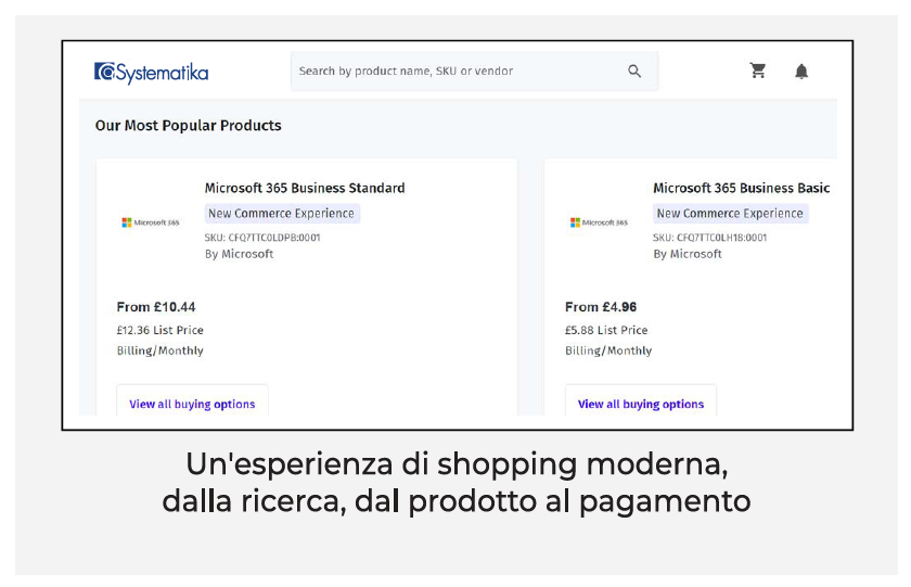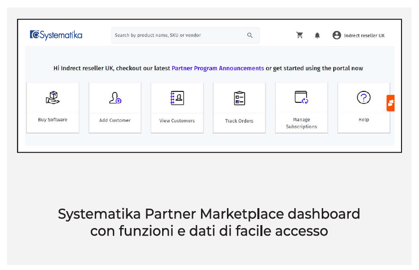 Questa moderna e intuitiva piattaforma consente ai partner di ottenere agility, risparmi di tempo e costi nel business. II Marketplace di Systematika fornisce gli strumenti e le risorse per offrire valore ai clienti. Dedica più tempo ai clienti, meno alle attività operative e amministrative. II Marketplace a il tuo portale per gestire il ciclo di vita del software Microsoft in una sola console web, supportato da Unified Support per risoluzioni veloci ed accurate ai problemi dei clienti.
